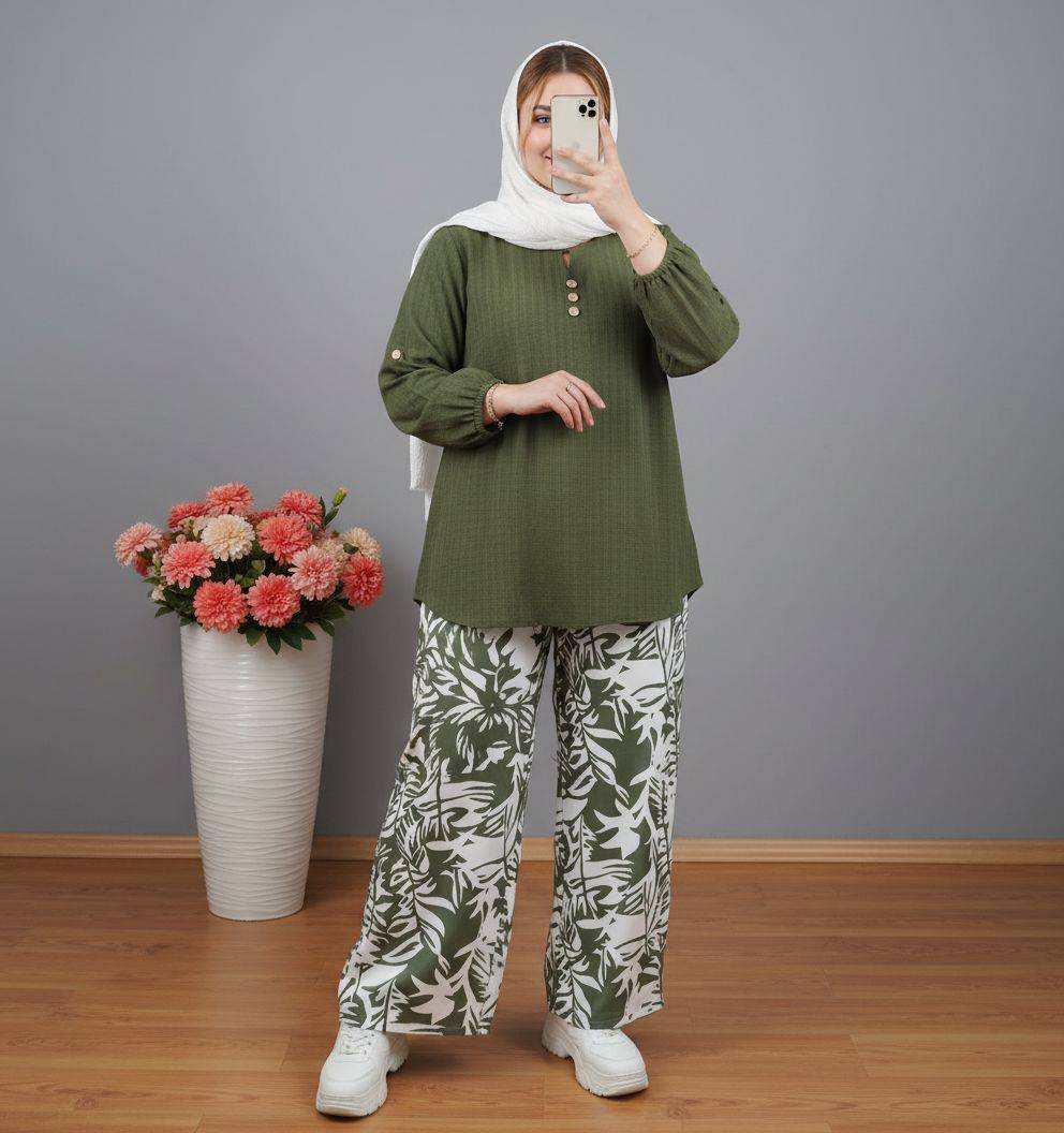 ست شومیز و شلوار زنانه عیدانه کنفی و شانتون