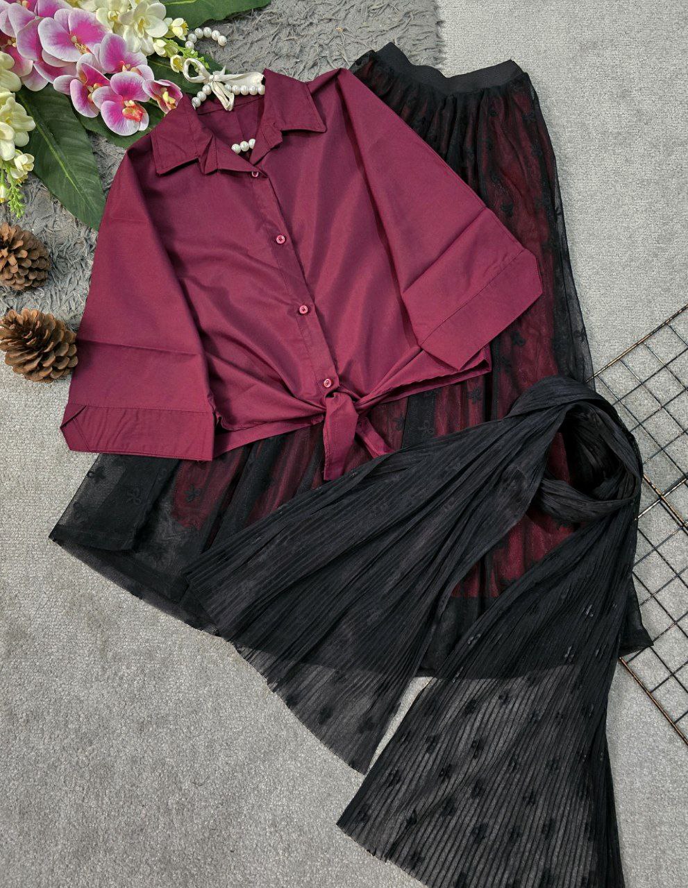 ست سه تیکه شومیز و دامن و شال یلدایی لعیا