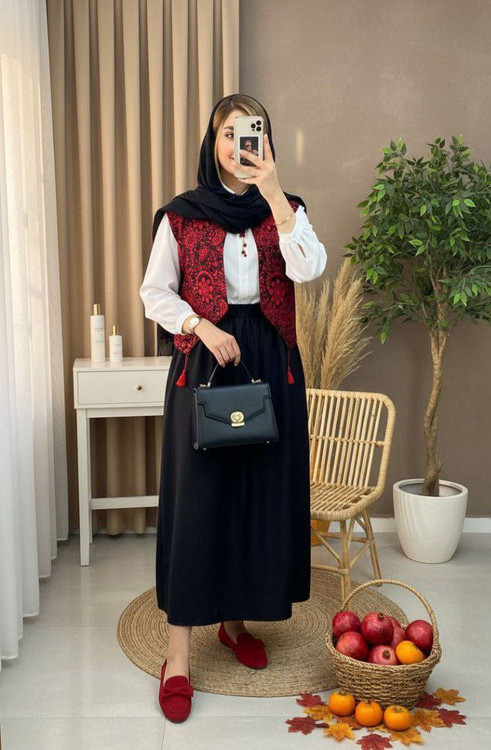 سه تیکه جلیقه و شومیز و دامن یلدایی