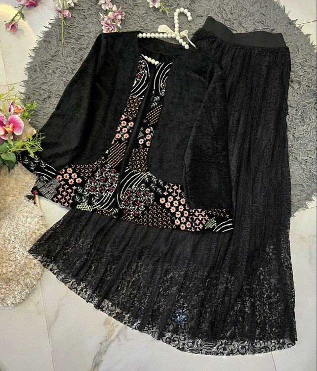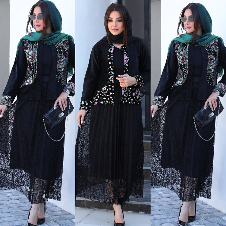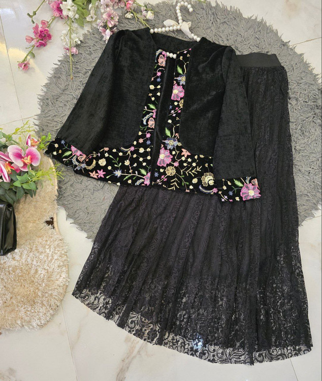 جنس : کت مخمل خرج کار هندی سوزن دوزی دامن گیپوری