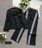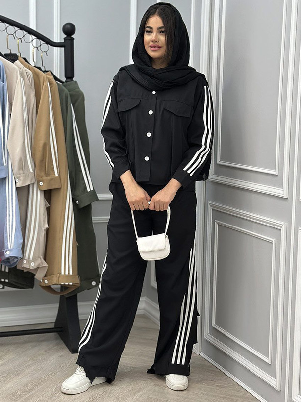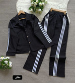 ست کت شلوار سه خط زنانه اسپرت کتان کش
