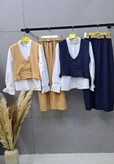 ست چهار تیکه شومیز و دامن و جلیقه و کمربند زنانه پروا