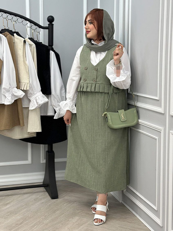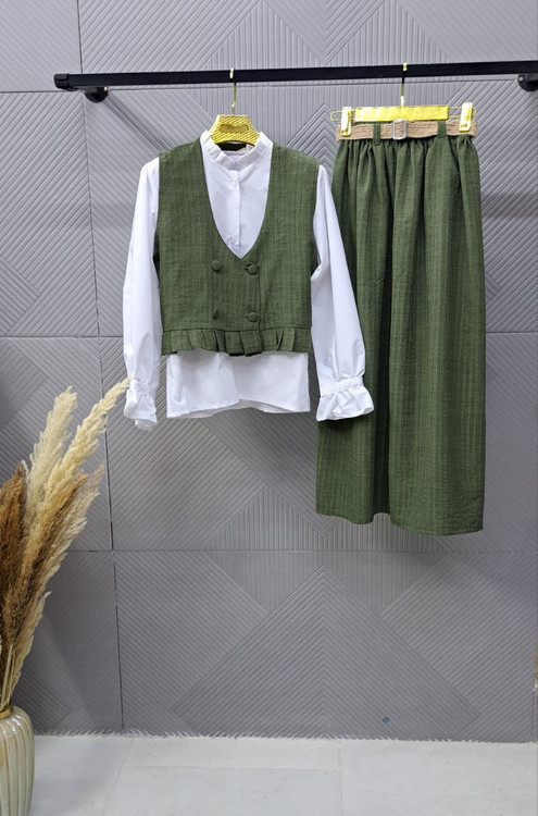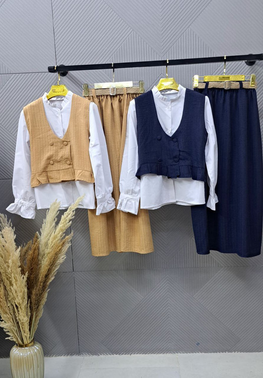 ست چهار تیکه شومیز و دامن و جلیقه و کمربند زنانه پروا