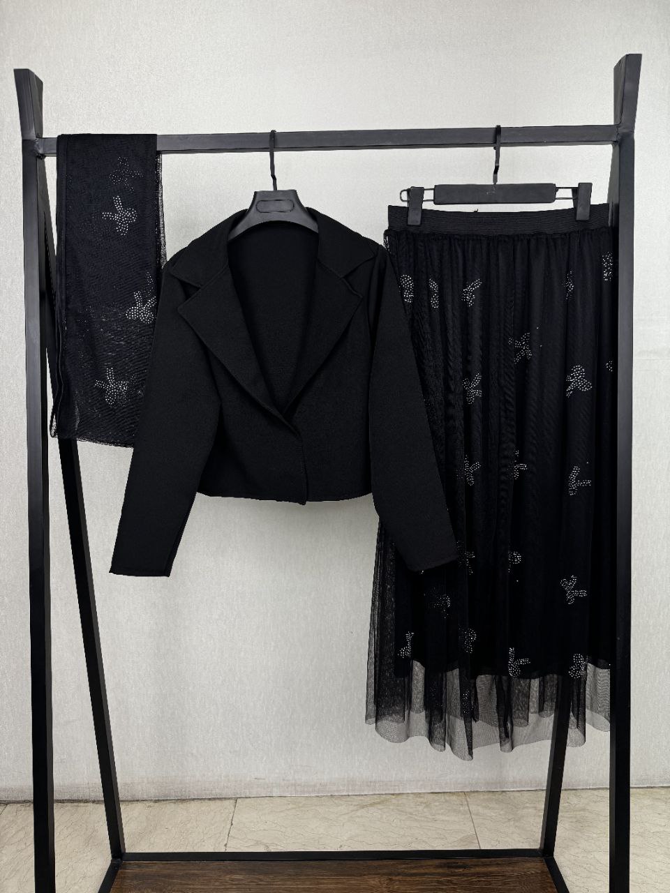 ست سه تیکه کت و دامن و شال زنانه مجلسی کرپ مازراتی و گیپور
