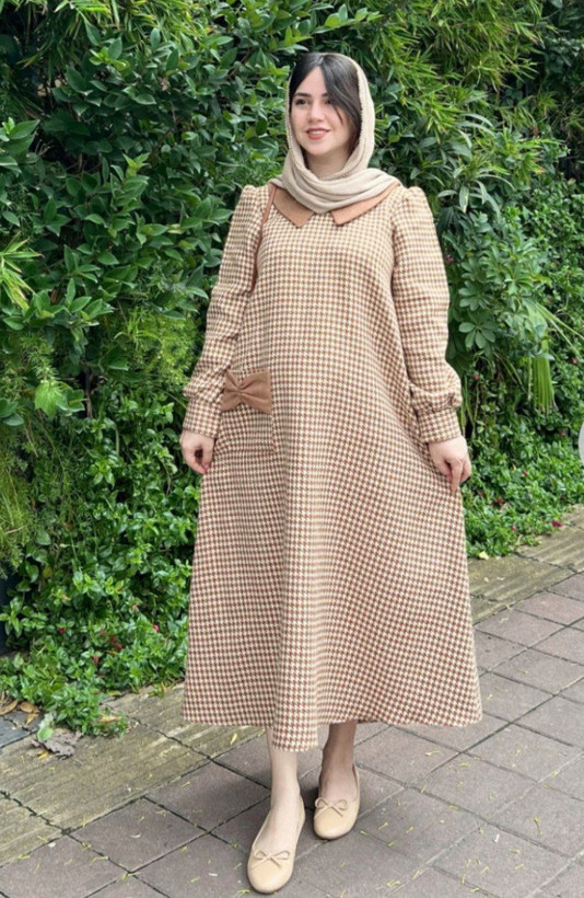 پیراهن بلند زنانه مجلسی پیچازی پشمی خرجکار مازراتی