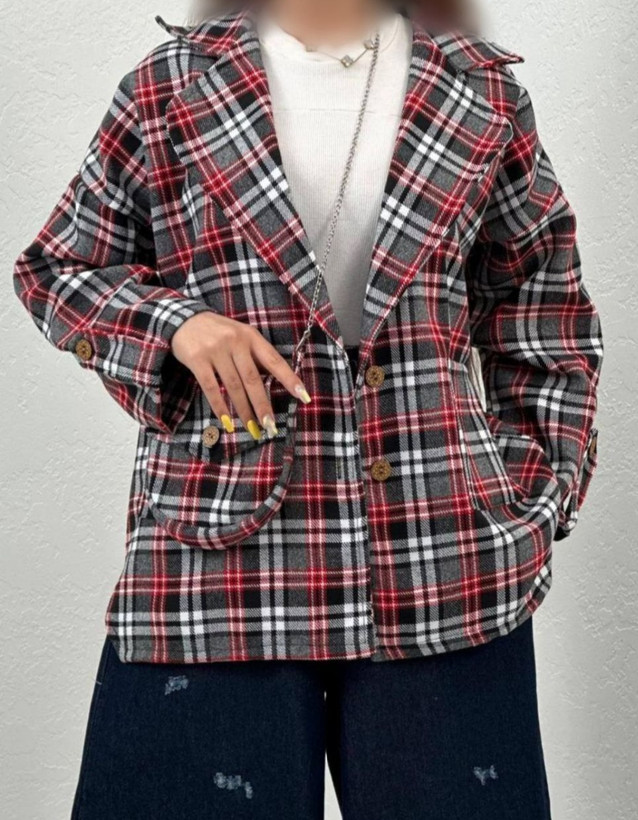 شکت چهارخونه زنانه اسپرت فوتر پشمی با کیف