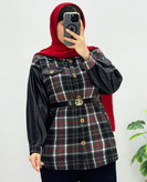 جنس : چهارخونه فوتر گرم بالا آستین چرم با کمربند
