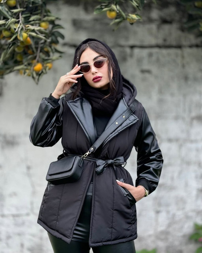کاپشن زنانه اسپرت مموری ضد آب و چرم تیر کمونی داخل پشم شیشه