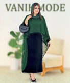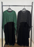 دو تیکه رویه و سارافون زنانه مجلسی دانتل و مخمل به همراه خرجکار الماسی
