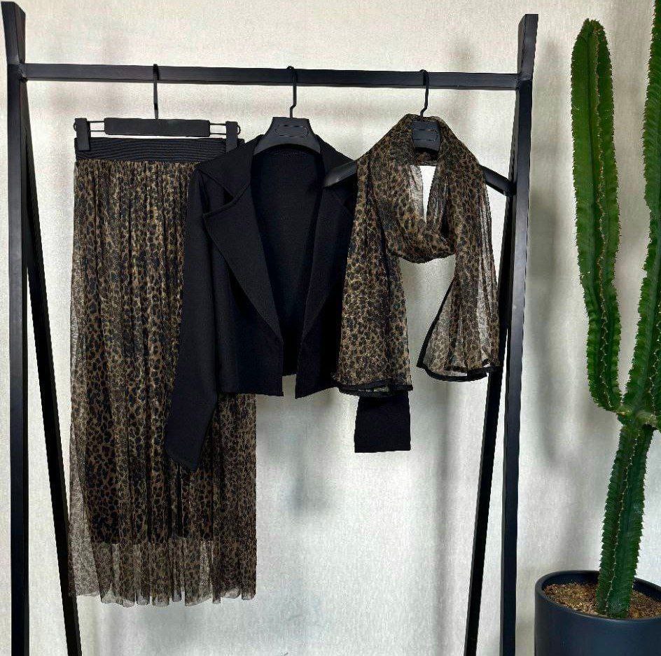 ست سه تیکه کت و دامن و شال زنانه مجلسی مازراتی و تور