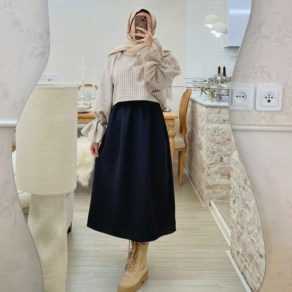 ست کراپ و دامن زنانه مجلسی تافته ضخیم و مخمل کبریتی