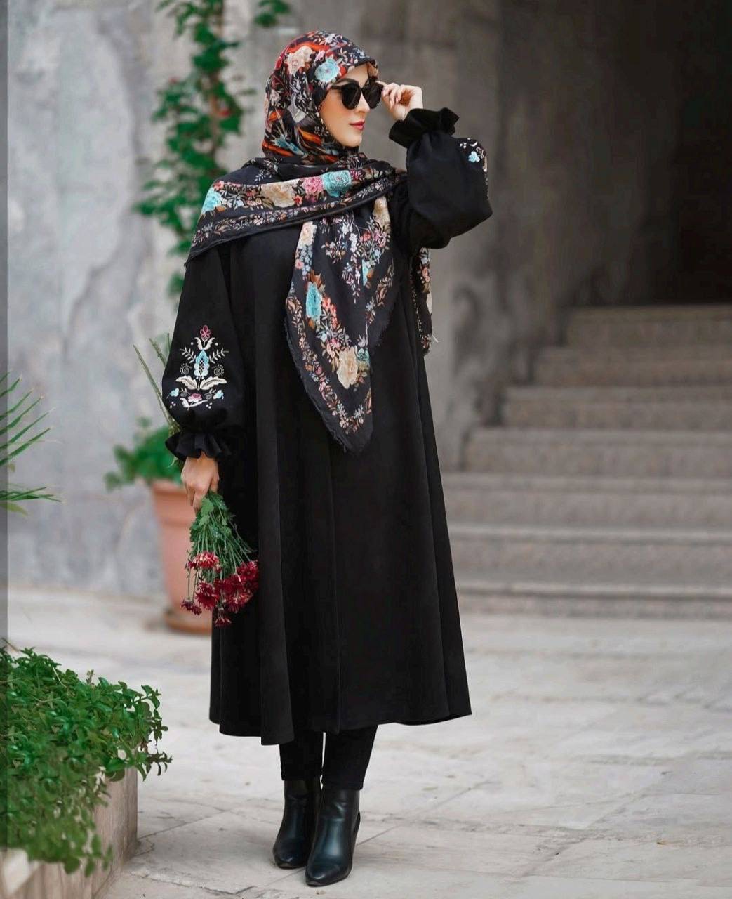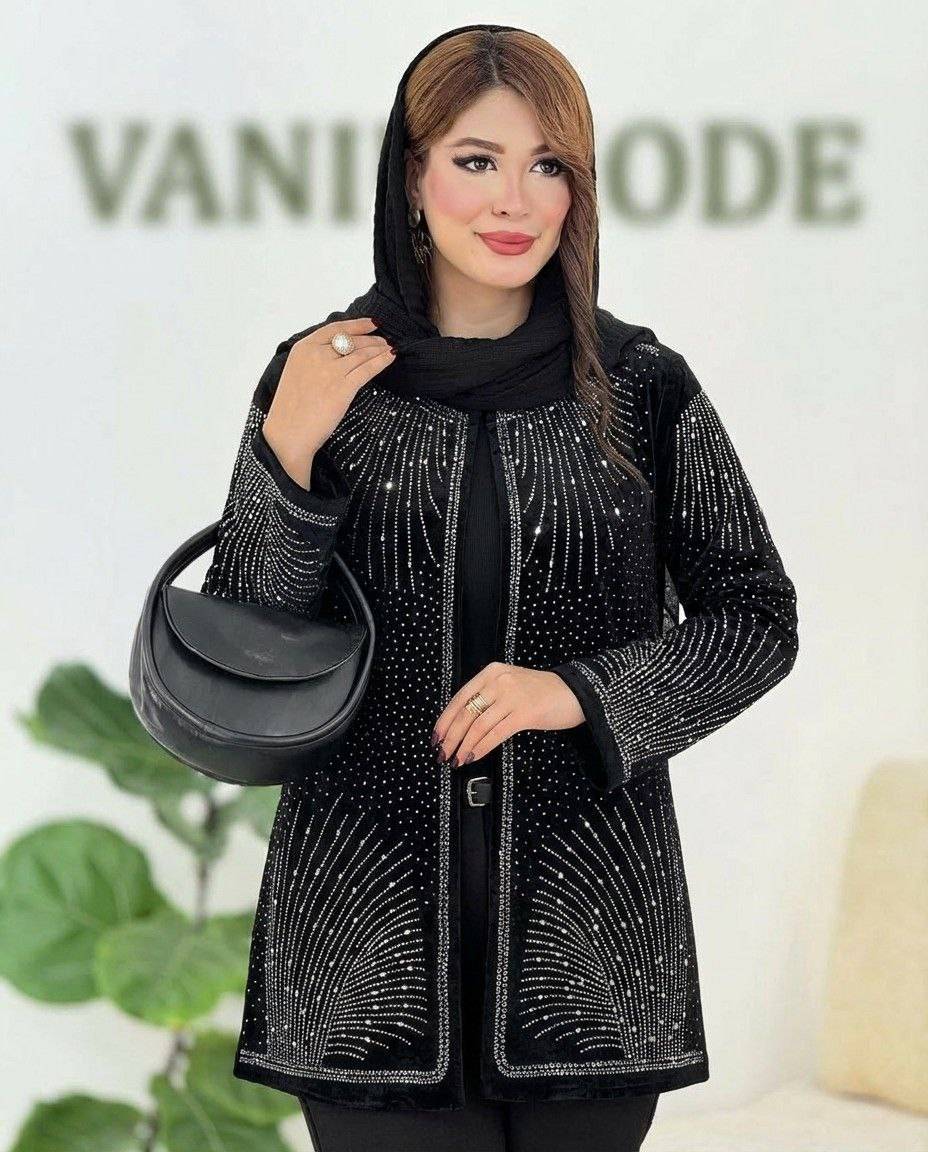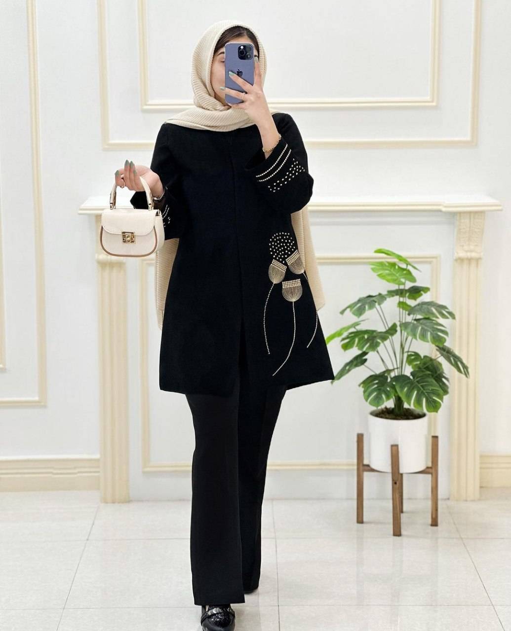 مانتو زنانه مزونی کرپ جت اندونزی و مخمل سوزندوزی